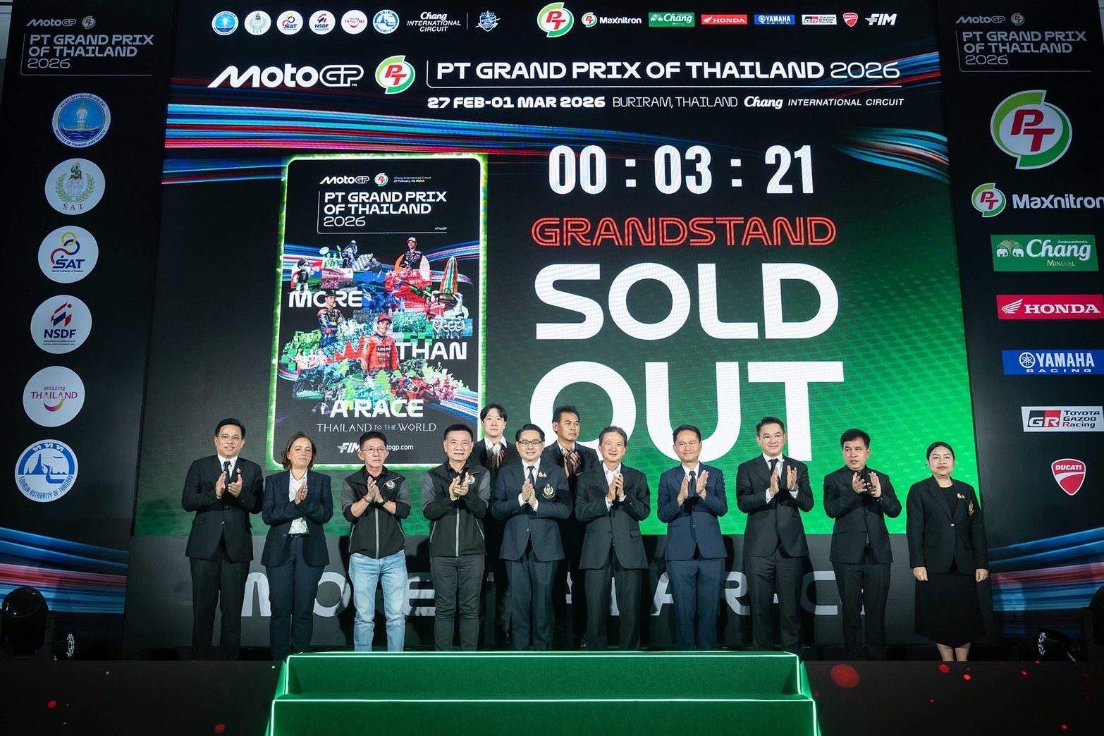 รัฐบาลไทย นำโดย การกีฬาแห่งประเทศไทย กระทรวงการท่องเที่ยวและกีฬา แถลงข่าวความพร้อมการเป็นเจ้าภาพจัดการแข่งขัน “โมโตจีพี” สนามประเทศไทย ประจำปี 2569 ซึ่งได้รับเกียรติสูงสุด ขึ้นแท่นสนามเปิดฤดูกาล เป็นปีที่ 2 ติดต่อกัน ตอกย้ำก้าวสำคัญสู่ปีที่ 7 ที่แข็งแกร่งของไทยบนแผนที่มอเตอร์สปอร์ตโลก พร้อมเดินหน้า สานต่อความสำเร็จ ดันไทยสู่ “ฮับมอเตอร์สปอร์ตภูมิภาค” และสร้างต้นแบบเมืองกีฬาอาเซียน จุดพลุคอนเซ็ปต์ ‘More Than a Race’ จัดใหญ่-สนุกขึ้น ตั้งเป้าเป็นสนามแข่งที่ดีที่สุดและน่าจดจำที่สุดในปฏิทิน MotoGP ลุ้นสร้างสถิติใหม่ผู้ชมสูงสุดทำลายสถิติเดิม พร้อมเปิดจำหน่ายบัตรวันแรก กระแสตอบรับดีเยี่ยม ที่นั่งแกรนด์สแตนด์ Sold Out ด้วยเวลา 3.21 นาที