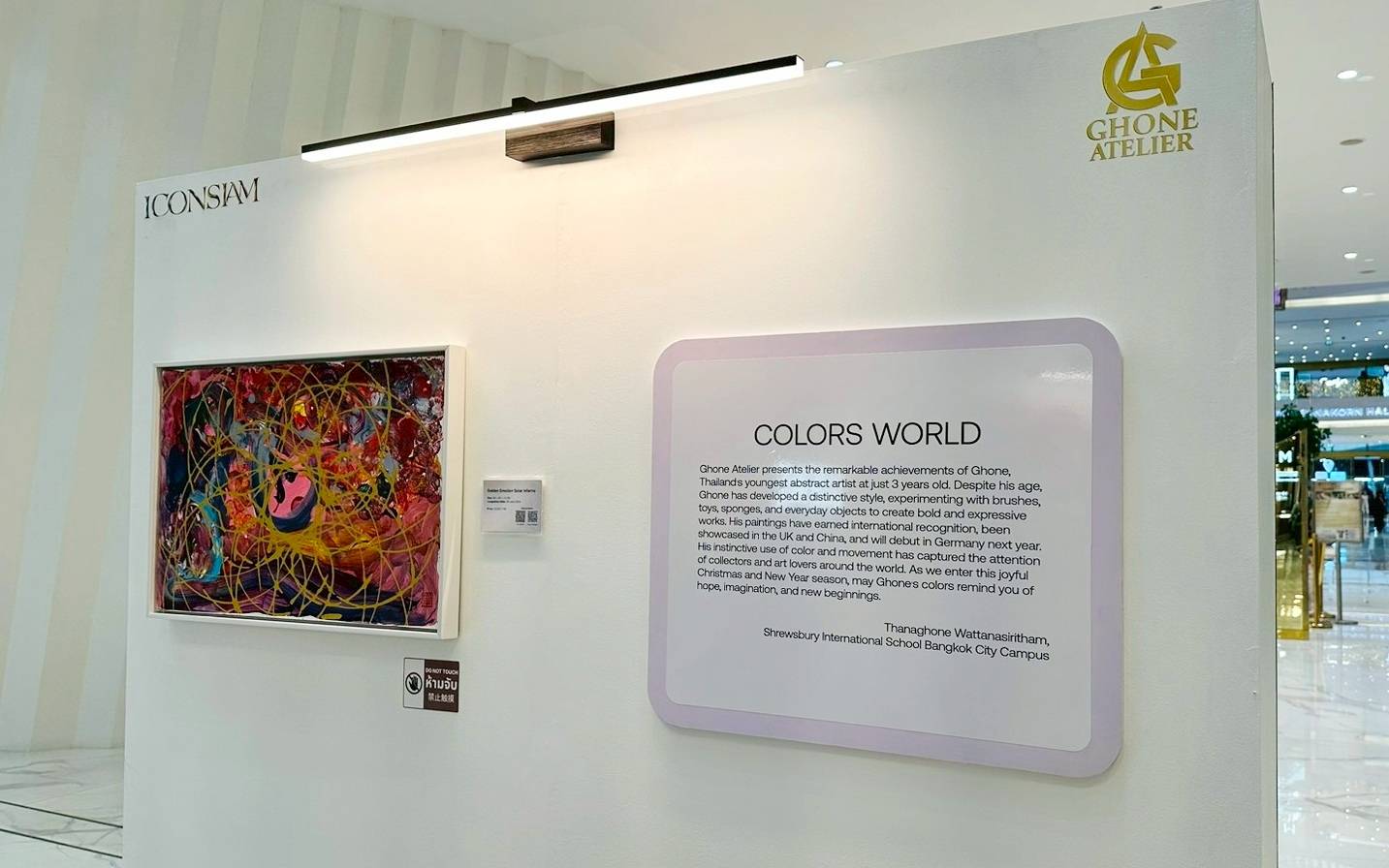 กรุงเทพฯ — ไอคอนสยาม และ Ghone Atelier ขอเชิญชมนิทรรศการศิลปะเดี่ยว “Colors World” โดย น้องกรณ์ ธนณ์กรร์ วัฒนศิริธรรม ศิลปินน้อยชาวไทยอายุเพียง 3 ขวบ ผู้มีความโดดเด่นด้านการเลือกสี และถ่ายทอดความรู้สึก จินตนาการผ่านการเคลื่อนไหวของสีและพื้นผิวอย่างเป็นอิสระ ณ Arts Way ชั้น M ไอคอนสยาม และขอเชิญร่วมประมูลผลงานศิลปะของน้องกรณ์เพื่อนำเงินรายได้หลังหักค่าใช้จ่ายนำไปบริจาคให้กับโรงเรียนที่ได้รับผลกระทบจากอุทกภัยในจ.สงขลา