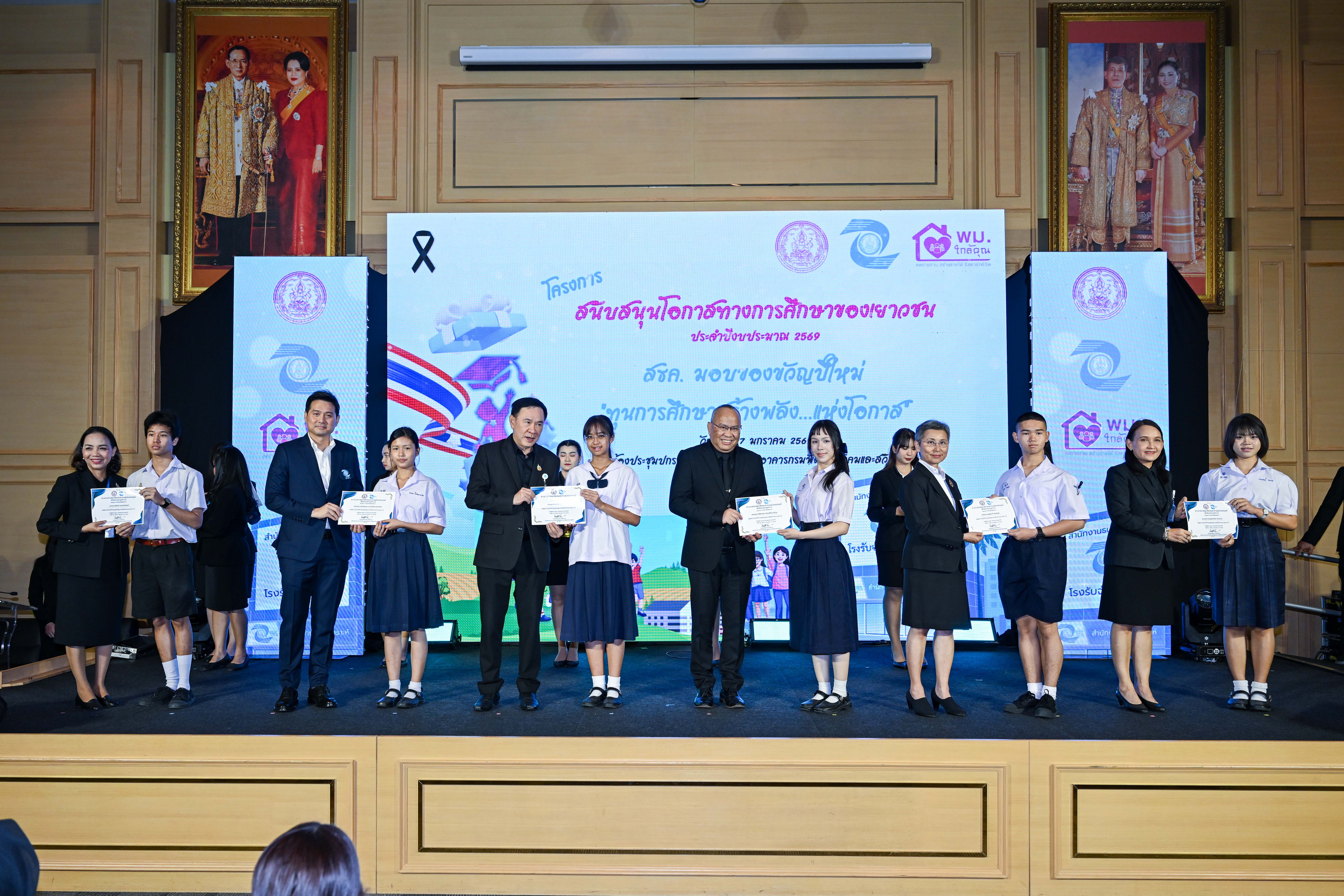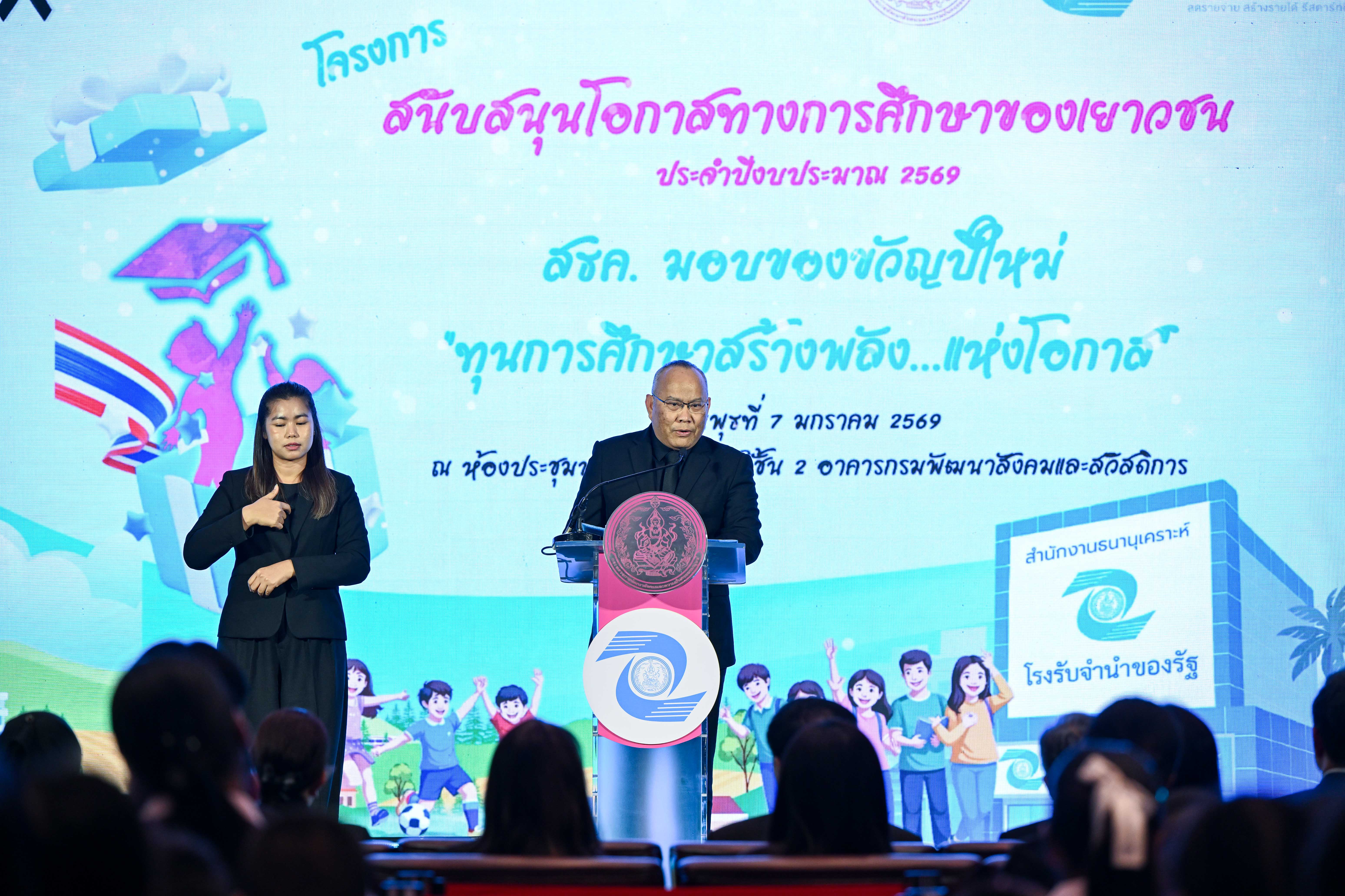 วันที่ 7 มกราคม 2569 นายกิตติ อินทรกุล รองปลัดกระทรวงการพัฒนาสังคมและความมั่นคงของมนุษย์ เป็นประธานในพิธีมอบทุนการศึกษาและเครื่องแบบนักเรียน ประจำปีงบประมาณ 2569 ให้แก่ผู้มีส่วนได้ส่วนเสีย ซึ่งเป็นประชาชนผู้ใช้บริการสำนักงานธนานุเคราะห์ (สธค.) ภายใต้โครงการสนับสนุนโอกาสทางการศึกษาของเยาวชนประจำปีงบประมาณ 2569 สธค. มอบของขวัญปีใหม่ “ ทุนการศึกษาสร้างพลังแห่งโอกาส” โดยมีนายประสงค์ พันธ์ลิมา ผู้อำนวยการสำนักงานธนานุเคราะห์ กล่าวรายงาน พร้อมด้วยคณะผู้บริหารกระทรวง พม. เข้าร่วม ณ ห้องประชุมปกรณ์ อังศุสิงห์ ชั้น 2 อาคารกรมพัฒนาสังคมและสวัสดิการ กระทรวงการพัฒนาสังคมและความมั่นคงของมนุษย์