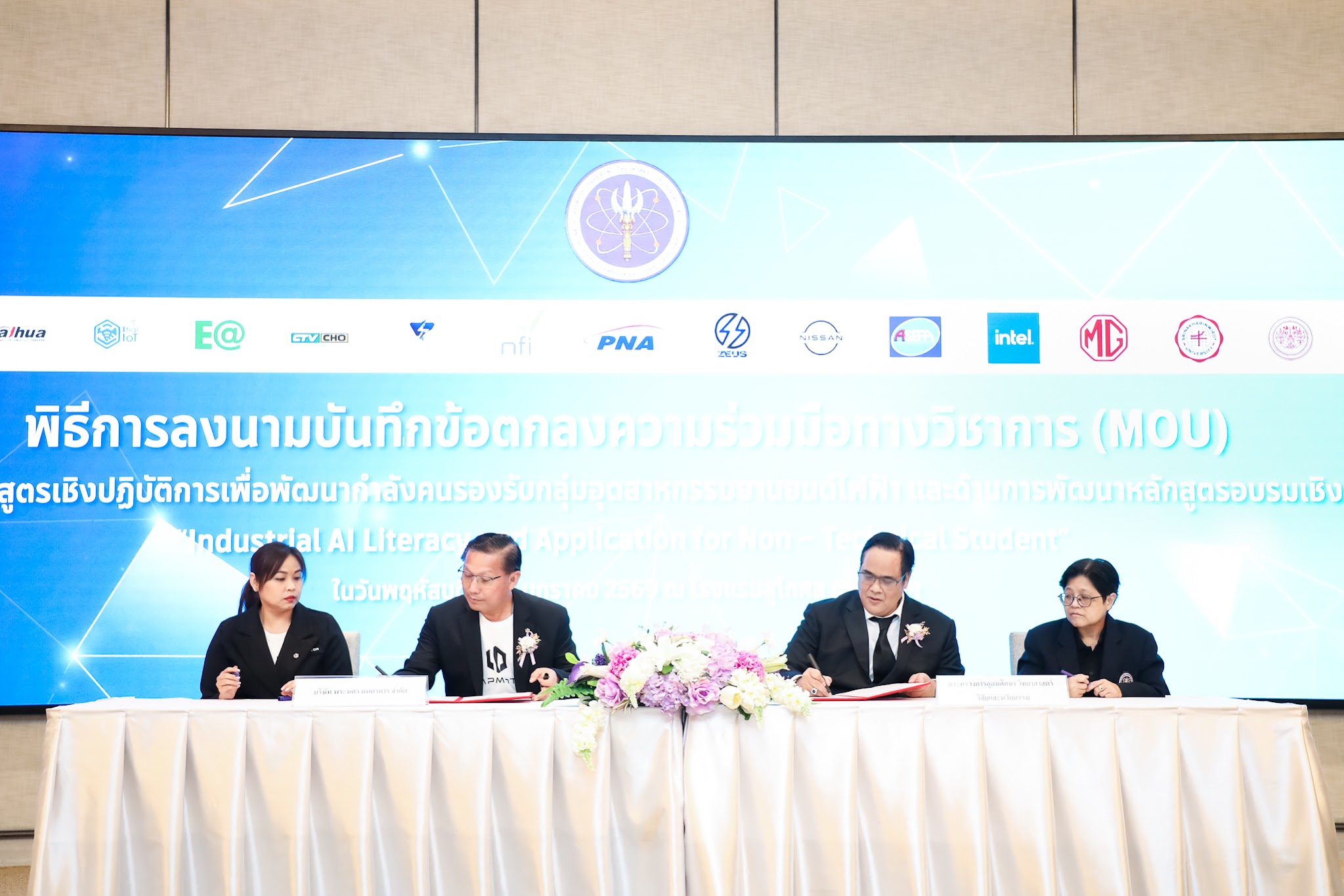 เมื่อวันพฤหัสบดีที่ 29 มกราคม 2569 เวลา 10.30 น. ณ ห้องกมลทิพย์ 3 ชั้น 2 โรงแรมสุโกศล กรุงเทพฯ โดยได้รับเกียรติจาก ดร.พันธุ์เพิ่มศักดิ์ อารุณี รองปลัดกระทรวงการอุดมศึกษา วิทยาศาสตร์ วิจัยและนวัตกรรม เป็นประธานในพิธี พร้อมด้วยผู้บริหารระดับสูงจากบริษัทเทคโนโลยีและยานยนต์ชั้นนำ รวมถึงผู้บริหารจากมหาวิทยาลัยและสถาบันการศึกษาชั้นนำทั่วประเทศ เข้าร่วมลงนามบันทึกข้อตกลงความร่วมมือทางวิชาการ (MOU) ความร่วมมือทั้ง 2 ด้าน ประกอบด้วย: