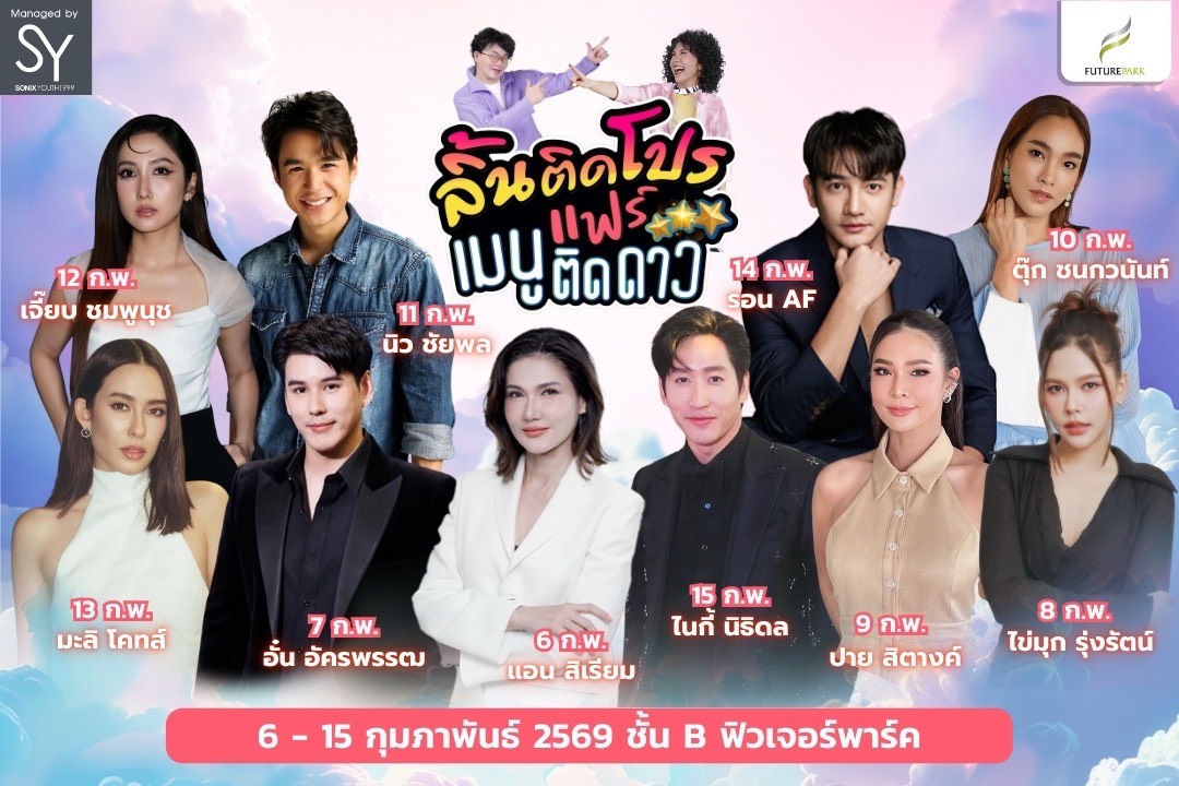 เปิดตลาดวันแรก กับมหกรรมอาหารอร่อย “ ลิ้นติดโปรแฟร์ เมนูติดดาว ” นัดนี้ปักหมุดกันที่ ศูนย์การค้าฟิวเจอร์พาร์ค ตั้งแต่วันที่ 6-15 ก.พ.นี้ ตลอด10 วัน เต็ม!! อิ่มหวานไปกับเทศกาลวันวาเลนไทน์ ที่เหล่าคู่รัก เพื่อนรัก ครอบครัวที่รัก ได้มีโมเม้นต์เลือกช้อปของอร่อยแบบหวานฉ่ำ!! ไม่ซ้ำใคร คึกคัก!! ตั้งแต่ช่วงพิธีเปิดงานกับบรรยากาศความรัก!! โดยเจ้าแม่ตลาด ก้อง ปิยะ-ท็อป ดารณีนุช ร่วมด้วย คุณกัลยา กมลรัตน์ ผู้อำนวยการด้านการตลาด ศูนย์การค้าฟิวเจอร์พาร์ค และสเปลล์ พร้อมนักแสดงตัวแม่มากฝีมือ “ แอน สิเรียม ภักดีดำรงฤทธิ์ ” ที่มาร่วมเชิญชวนชิม และเหล่าดาราเจ้าของร้านอร่อย ผัดไท ดีใจ , ธงธง มกจ๊ก , โบ๊ท ธารา ที่มาร่วมเปิดงาน พร้อมเสิร์ฟเมนูเด็ด ให้เหล่านักชิม และ FC ได้ช้อปแบบใกล้ชิด อิ่มฟินกันสุดๆ และในช่วงเทศกาลวันแห่งความรัก เจ้าของตลาดเลยจัดหนัก ขนศิลปิน ดาราหมุนเวียนกันมามอบความสุข ให้เหล่านักช้อปได้เลือกสรรเมนูที่ถูกใจ โดยวันที่ 7 ก.พ. พบกับ อั๋น อัครพรรฒ / 8 ก.พ. ไข่มุก รุ่งรัตน์ / 9 ก.พ. ปาย สิตางค์ / 10 ก.พ.ตุ๊ก ชนกวนัน / 11 ก.พ. นิว ชัยพล / 12 ก.พ. เจี๊ยบ ชมพูนุช / 13 ก.พ.มะลิ โคทส์ / 14 ก.พ. รอน AF และ 15 ก.พ. ไนกี้ นิธิดล ตั้งแต่เวลา 16.00 น. ของทุกวัน ให้คุณลูกค้าได้เพลิดเพลิน เดินช้อปตลอดทั้งงาน ตั้งแต่วันนี้ ถึง 15 กุมภาพันธ์นี้ ณ ชั้น B ฟิวเจอร์พาร์ค ละลานตาของดีของอร่อยกว่า 1,000 เมนู ที่เคลื่อนที่มาให้ได้เลือกสรร อิ่มหนำสำราญกับ อาหารสุดเลิฟ!!