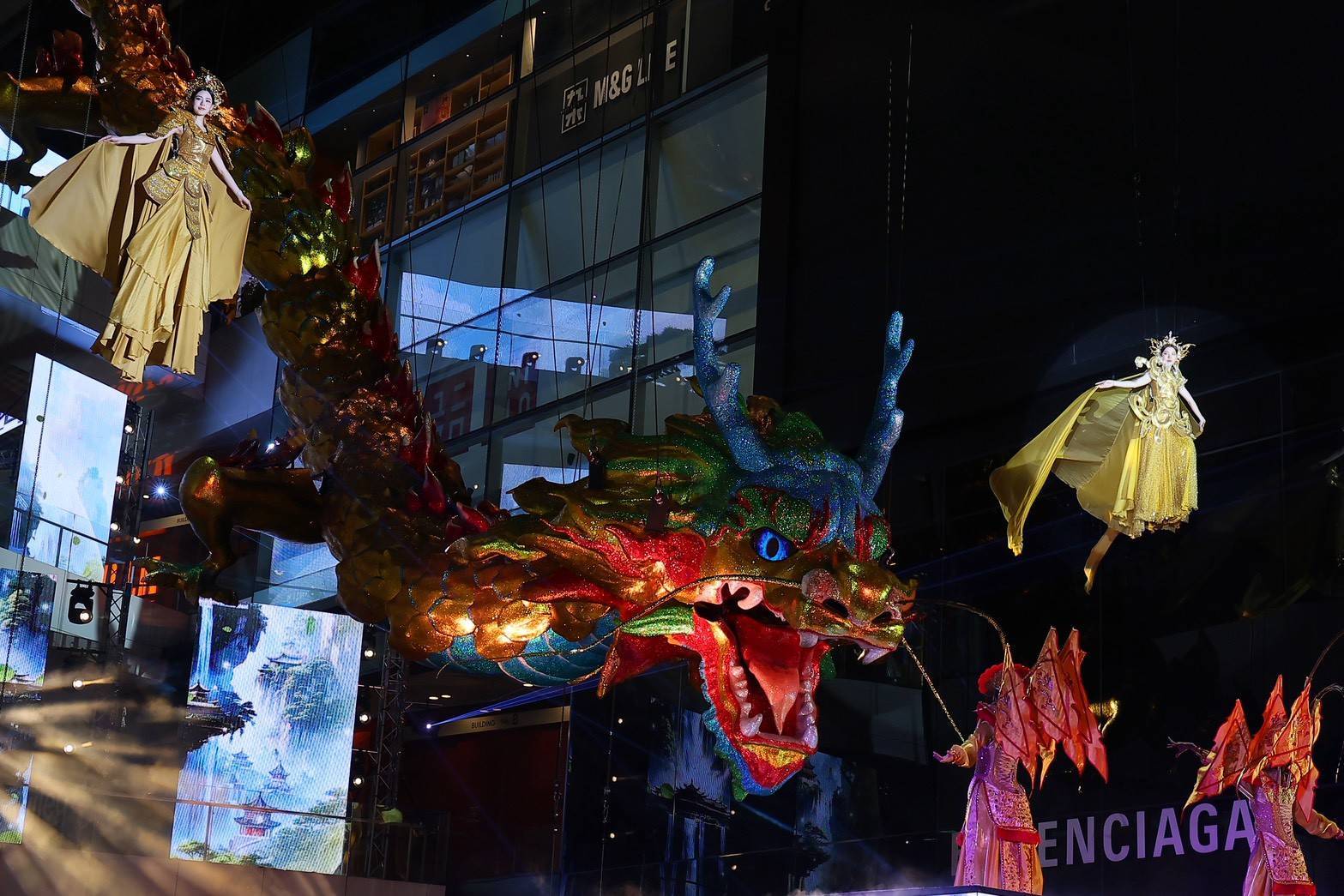 “ทวยเทพแซ่ซ้อง ต้อนรับมังกรสวรรค์ ประทานพรรับตรุษจีนปีมะเมีย” ที่ผสานศิลปวัฒนธรรมจีนร่วมสมัยเข้ากับเทคนิคสลิงและแสงสีเสียงสุดตระการตา โดยมีสองดาราระดับโกลบอล “หลิงหลิง - ศิริลักษณ์ คอง” และ “ออม - กรณ์นภัส เศรษฐรัตนพงศ์” ร่วมแสดงเป็น 2 จักพรรดินีที่เสด็จลงมาเป็นสักขีพยานในการต้อนรับ จักรพรรดิเทพมังกรสวรรค์ และอวยพรมอบความสิริมงคลให้กับผู้ร่วมงาน ยิ่งใหญ่ตระการตาด้วยทัพนักแสดงกว่า 100 ชีวิต ท่ามกลางประชาชนและนักท่องเที่ยวต่างชาติที่มาร่วมชมความยิ่งใหญ่อลังการอย่างเนืองแน่น