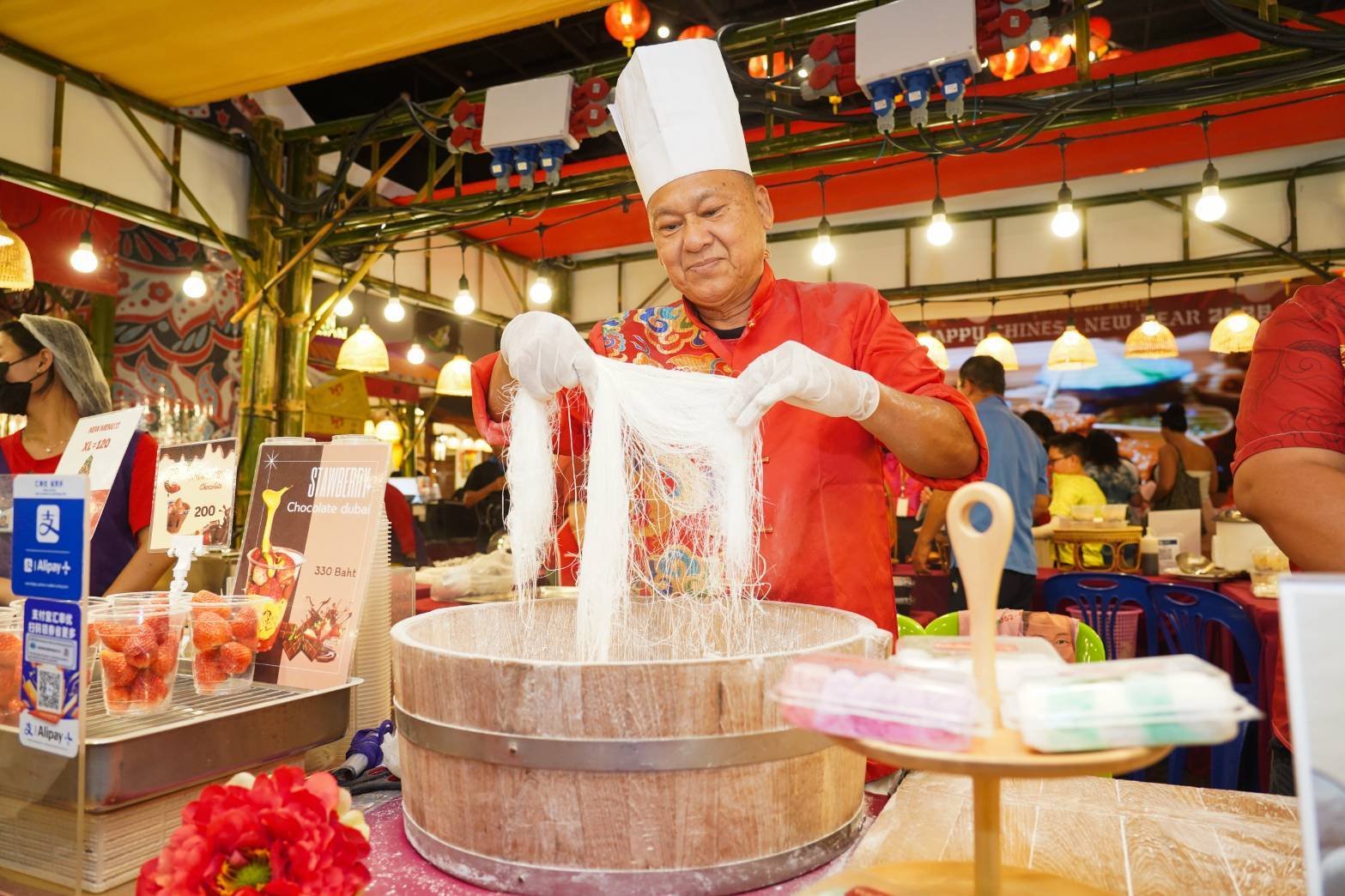 อีกหนึ่งไฮไลต์ห้ามพลาดในช่วงเทศกาลตรุษจีน กับเมนูอาหารมงคลเลิศรส เพราะเป็นสัญลักษณ์ของคำอวยพร ความเชื่อ และความปรารถนาดีที่สืบทอดกันมาอย่างยาวนาน ภายในงานคัดสรรเมนูมงคลความหมายดีมาให้เลือกอิ่มอร่อยอย่างจุใจ ไม่ว่าจะเป็น เป็ดย่าง ผัดหมี่หมื่นปี กุ้ง-ปูอบวุ้นเส้น หมูทองคำ (หมูกรอบ) เมนูพิเศษที่รังสรรค์จากน้ำปลาแท้ตราปลาหมึก ได้แก่ ผัดเต้าหู้ทรงเครื่องสิริมงคล, ไก่ผัดเม็ดมะม่วงรับทรัพย์ และลาบเป็ดย่างเสริมลาภ พร้อมด้วยไก่มงคลต้มน้ำปลา รสชาติกลมกล่อม หอมน้ำปลา เสิร์ฟคู่กับน้ำจิ้มซีฟู้ดรสเด็ด เพิ่มความแซ่บเบา ๆ ทุกเมนูโดดเด่นด้วยรสชาติกลมกล่อม ไม่เค็มโดด และกลิ่นหอมน้ำปลาเอกลักษณ์เฉพาะตัว ต้มด้วยน้ำปลาแท้ตราปลาหมึก ที่อยู่คู่ครัวไทยมากว่า 81 ปี และส่งออกกว่า 70ประเทศทั่วโลก รวมถึงเมนู มงคลจากสมาคมเชฟจีนแห่งประเทศไทย ที่ร่วมรังสรรค์เมนูมงคลต้อนรับตรุษจีนโดยเฉพาะ อาทิ หมูหัน เป็ดปักกิ่ง เป็ดกีตาร์ ปลากะพงนึ่งซีอิ๊ว และหูฉลาม นอกจากนี้ ยังมี เมนูขนมมงคลไหมฟ้า หรือขนมหนวดมังกร ซึ่งหาทานยาก และเซ็ตซาลาเปาความหมายมงคล สำหรับมอบเป็นของขวัญแทนใจแก่ญาติผู้ใหญ่ในช่วงเทศกาลตรุษจีน เติมเต็มบรรยากาศแห่งการเฉลิมฉลองให้อบอุ่นและเปี่ยมด้วยความหมาย และภายในการจัดงานยังมีกิจกรรมสุดพิเศษ! Mini Workshop สุดเอ็กซ์คลูซีฟ!! กับ เชฟอิน แซ่ขอ โดยบรรยากาศในการ Workshop เต็มไปด้วยความอบอุ่นสนุกสนานแบบเป็นกันเอง โดยเชฟอินจัดเต็มทั้งเรื่องความรู้ และเคล็ดลับในการรังสรรค์เมนูมงคลต้อนรับปีใหม่จีนมามอบให้อย่างจัดเต็ม