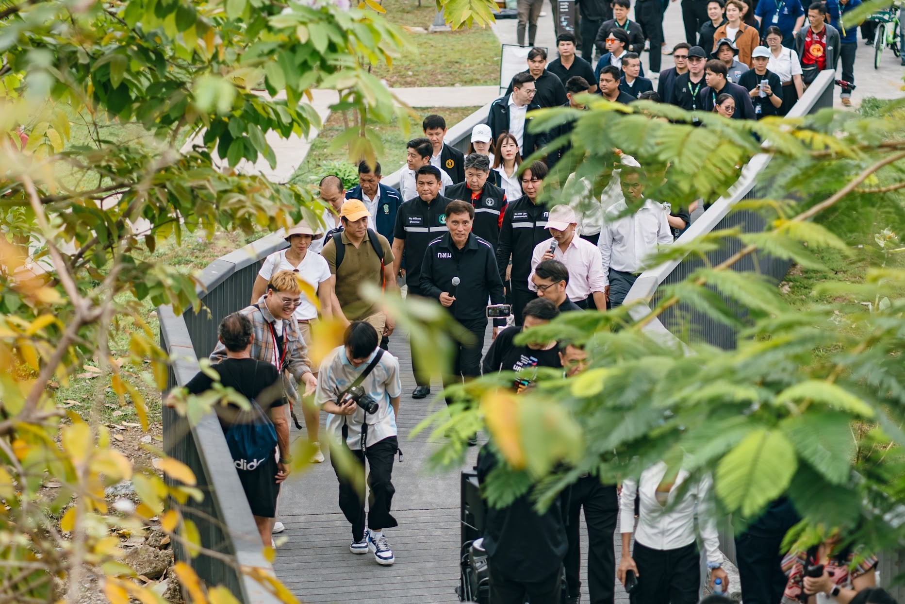 2. การออกแบบเพื่อทุกคน (Universal Design & Inclusion): กทม. ให้ความสำคัญอย่างสูงสุดกับการเข้าถึงพื้นที่ โดยโครงการได้ดำเนินการติดตั้งลิฟต์โดยสาร บริเวณจุดเชื่อมต่อสำคัญ และสร้างทางลาด (Ramp) ขนาดใหญ่ความยาวกว่า 57 เมตร ที่มีความลาดชันเหมาะสมตามมาตรฐานสากล เพื่อให้ผู้พิการที่ใช้รถเข็น ผู้สูงอายุ และครอบครัวที่ใช้รถเข็นเด็ก สามารถขึ้นมาใช้พื้นที่พักผ่อนลอยฟ้าได้อย่างเท่าเทียมกันเป็นครั้งแรก