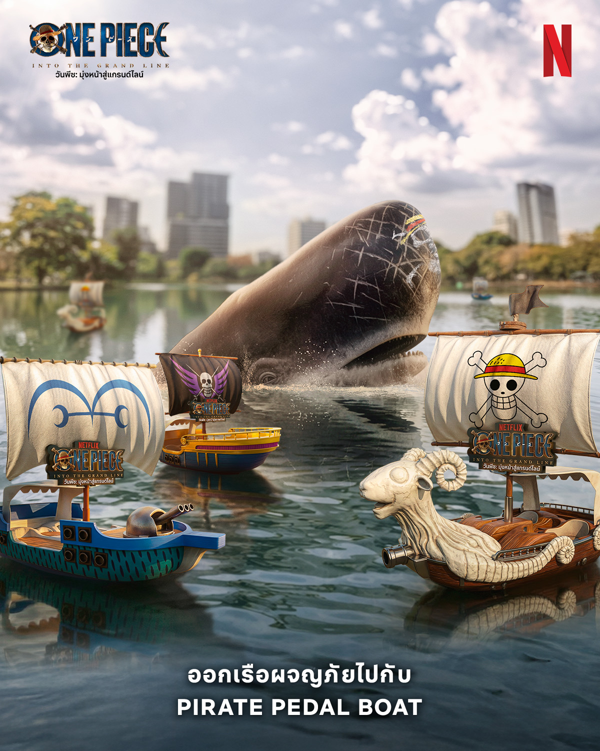 หยิบหมวกฟาง กางใบเรือ กับ “GRAND LINE IN THAILAND” Netflix เนรมิตแกรนด์ไลน์ใจกลางกรุง ชวนเหล่าโจรสลัดพบวาฬยักษ์ลาบูน ต้อนรับซีรีส์ วันพีซ: มุ่งหน้าสู่แกรนด์ไลน์ 8-15 มีนาคม 2569 นี้ ณ สวนลุมพินี บริเวณ บึงน้ำใกล้จุดบริการเช่าเรือปั่น