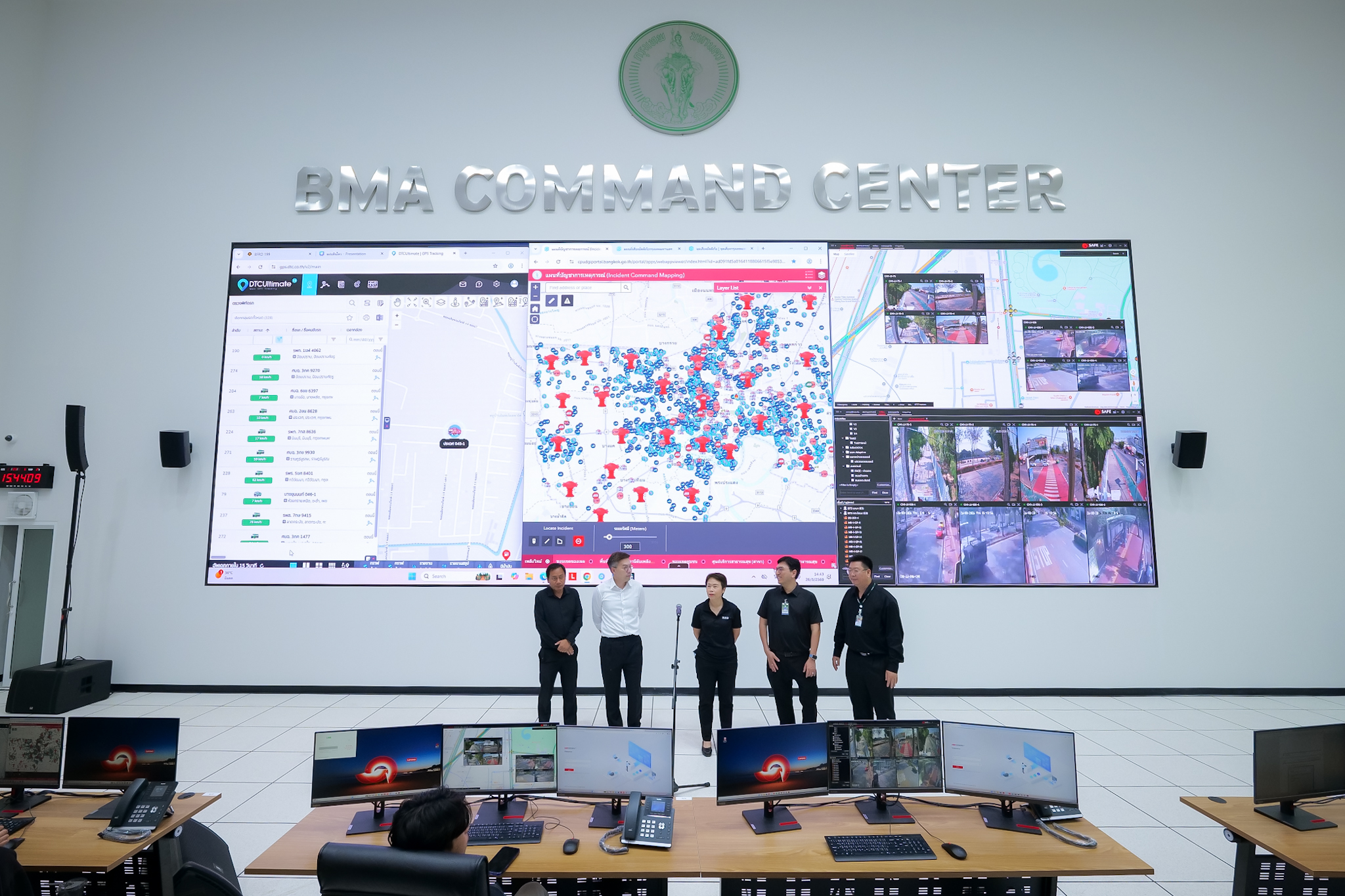 ในวันนี้ กทม. มี “BMA Command Center” ศูนย์ดูแลความปลอดภัยเมือง ที่ทำงานตลอด 24 ชั่วโมง ทำหน้าที่รวบรวม วิเคราะห์ และเฝ้าระวังข้อมูลจากทุกระบบ ผ่านแผนที่บัญชาการเหตุการณ์ดิจิทัล (Incident Command Mapping) ที่เชื่อมโยงข้อมูลทั้งด้านจราจร สภาพอากาศ น้ำท่วม ความร้อน ฝุ่น PM2.5 ตำแหน่งหน่วยฉุกเฉิน สถานพยาบาล และกลุ่มเปราะบาง ฯลฯ โดยระบบดังกล่าวจะถูกนำไปใช้จริงเพื่อการเฝ้าระวังในภาวะปกติและในการดูแลความปลอดภัยในสถานการณ์ต่าง ๆ เช่น ช่วงเทศกาลสำคัญหรือเหตุฉุกเฉิน เพื่อให้การตัดสินใจและแจ้งเตือนประชาชนเป็นไปอย่างแม่นยำและทันท่วงที