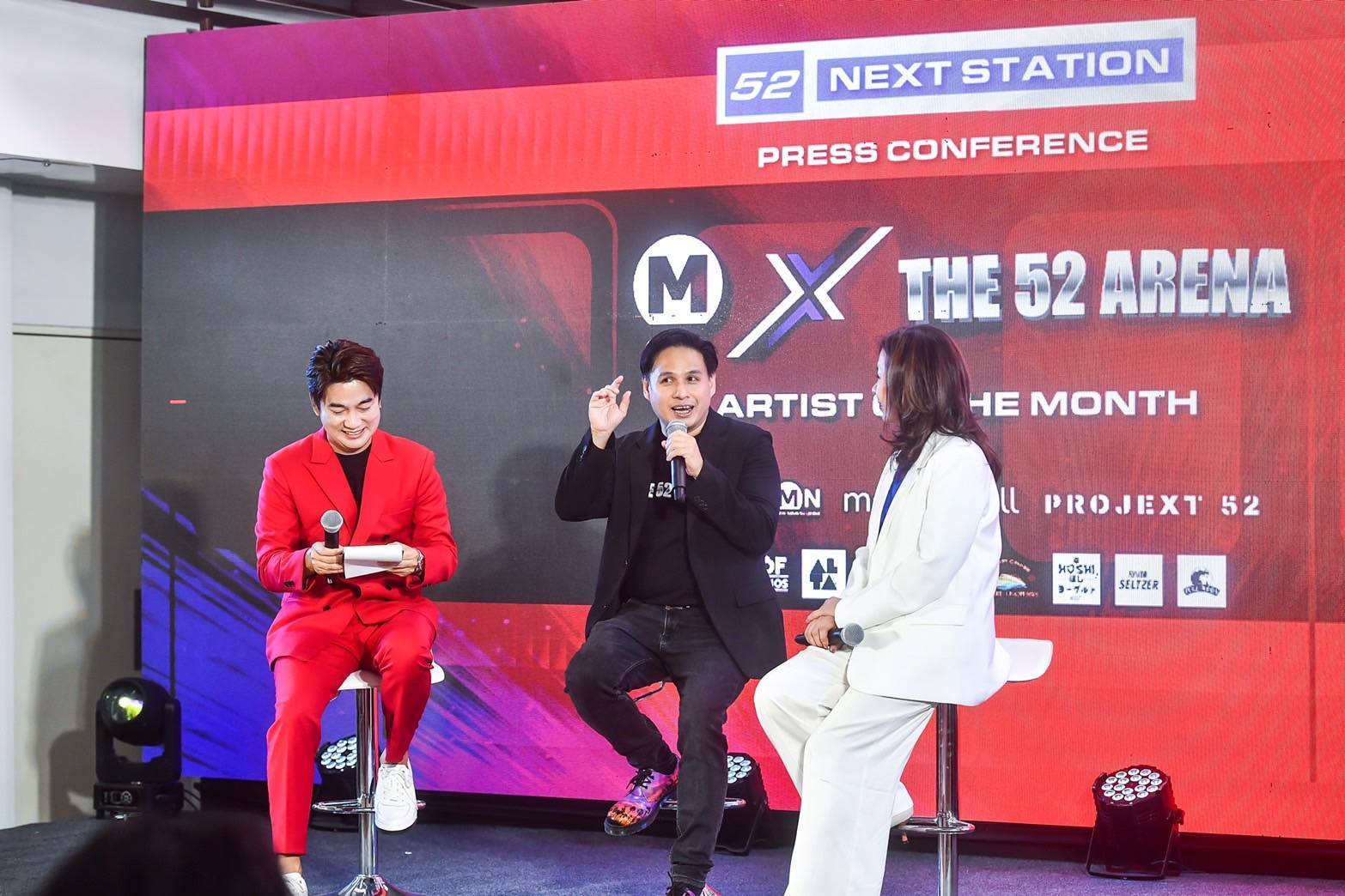 โดยภายในงานแถลงข่าว MRT x THE 52 ARENA “Artist of The Month” พร้อมเปิดตัว Line Up จัดเต็มความพิเศษ พร้อมการรวมตัวของเหล่าแขกรับเชิญคนพิเศษ อาทิ ฟลุ๊คจ์ - พงศภัทร์ กันคำ เจ้าของฉายา ไอ้ต้าวเงือก ลักยิ้มละลาย หล่อละมุน, กลุ่ม BBG.Bubblegum (แบงค์, เกมส์, บีม, อาร์ม) รวมถึงครีเอเตอร์ชื่อดังอย่าง DRiPA และ AngelAngie ที่มาร่วมสร้างสีสันและร่วมเป็นส่วนหนึ่งของปรากฏการณ์ความสนุกครั้งนี้