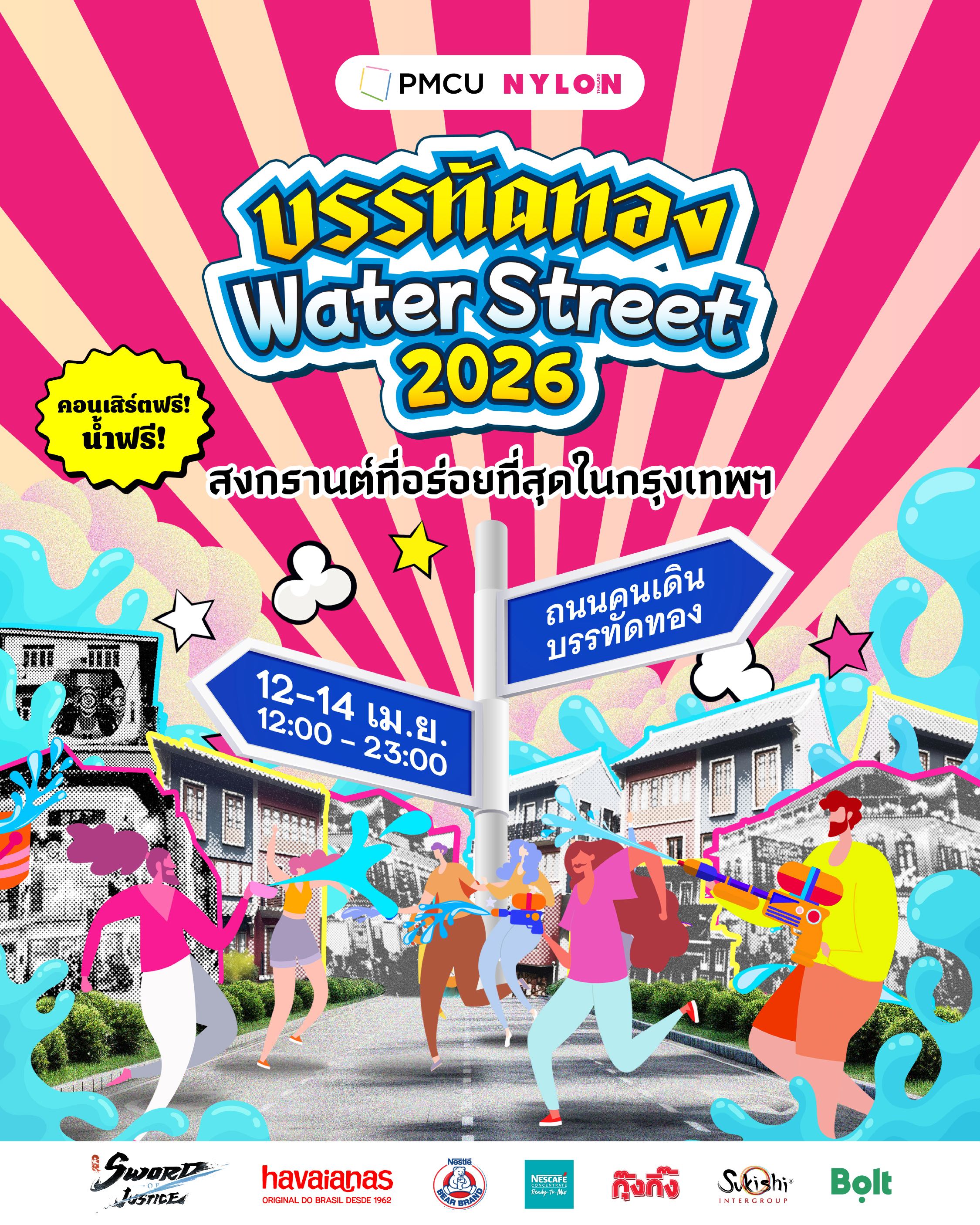 “บรรทัดทอง Water Street 2026” จัดโดยสำนักงานจัดการทรัพย์สิน จุฬาลงกรณ์มหาวิทยาลัย และ NYLON THAILAND ร่วมกับ Sword of Justice, havaianas, นมตราหมียูเอชที, เนสกาแฟ เรดี้ทูมิกซ์, กุ๊งกิ๊ง, Bolt Thailand และ Sukishi