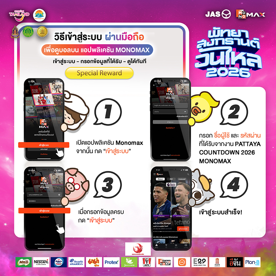 เตรียมตัวให้พร้อมกับมหกรรมความบันเทิงริมทะเลสุดยิ่งใหญ่ “พัทยา สงกรานต์ วันไหล 2026” ภายใต้ความร่วมมือของ การท่องเที่ยวแห่งประเทศไทย สำนักงานพัทยา, เมืองพัทยา และ สำนักงานวัฒนธรรมจังหวัดชลบุรี ร่วมกับ MONOMAX (โมโนแม็กซ์) เดินหน้ายกระดับเทศกาลสงกรานต์ไทยสู่เวทีระดับโลก